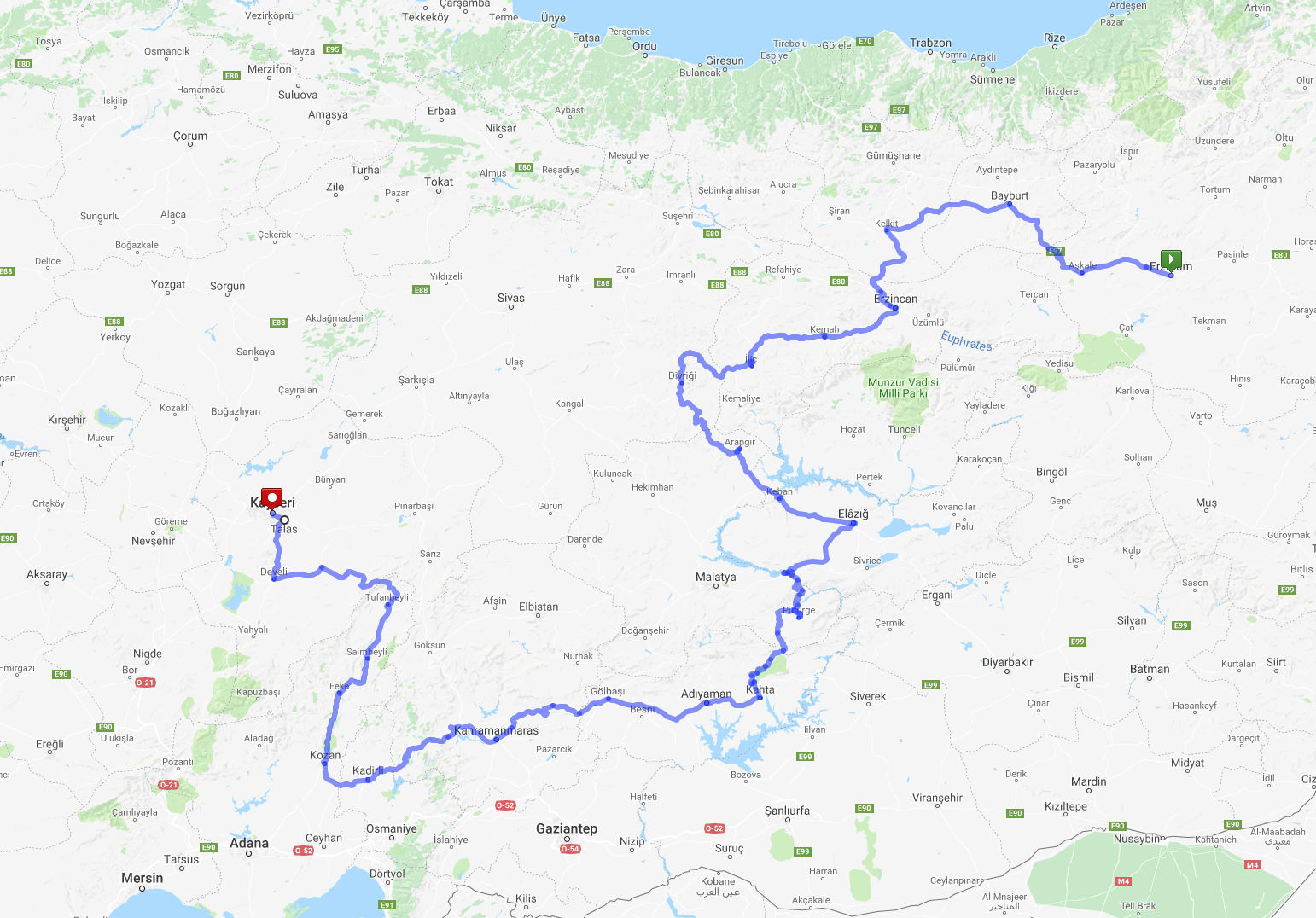 istanbul ile bayburt arasi kac km kac